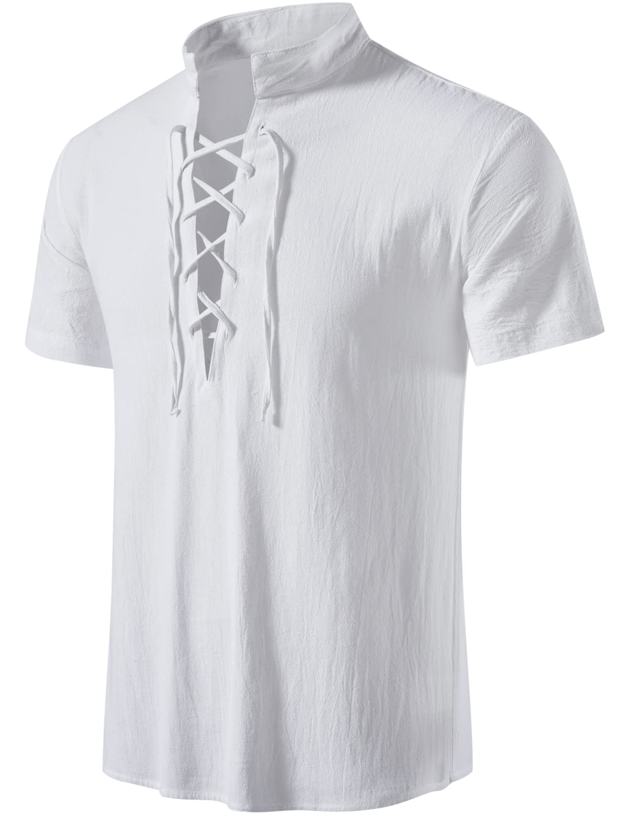Haomeili Men S Cotton Linen Traditional Retro Style Lace Up Short Sleeve Shirts For Medieval Viking Hippie Matching Walmart Com